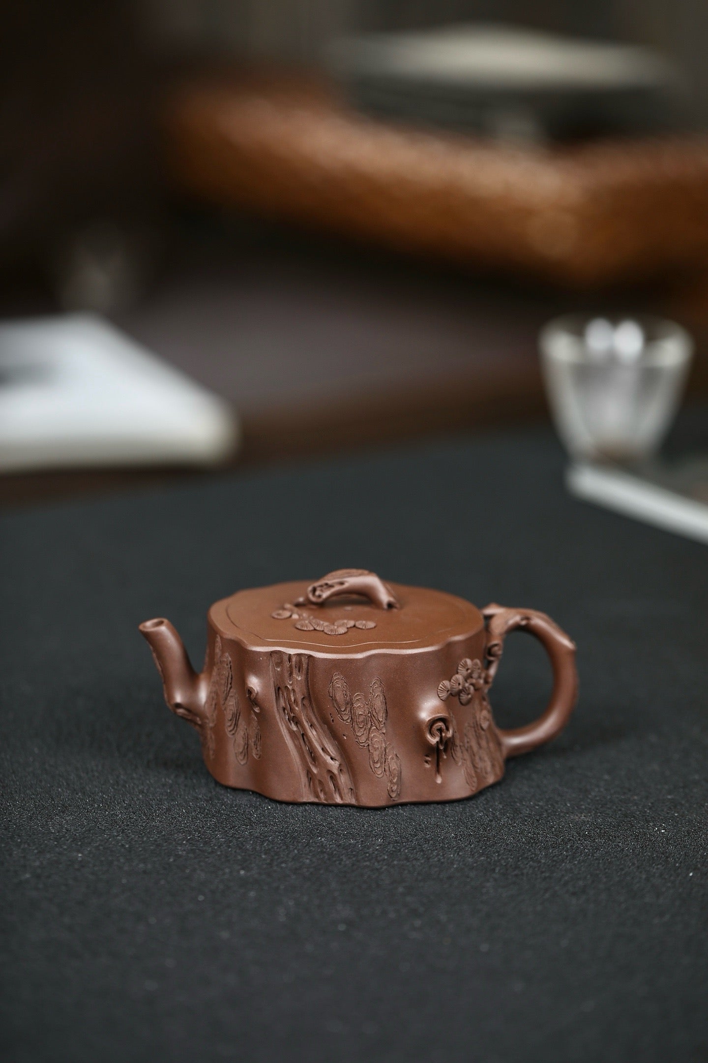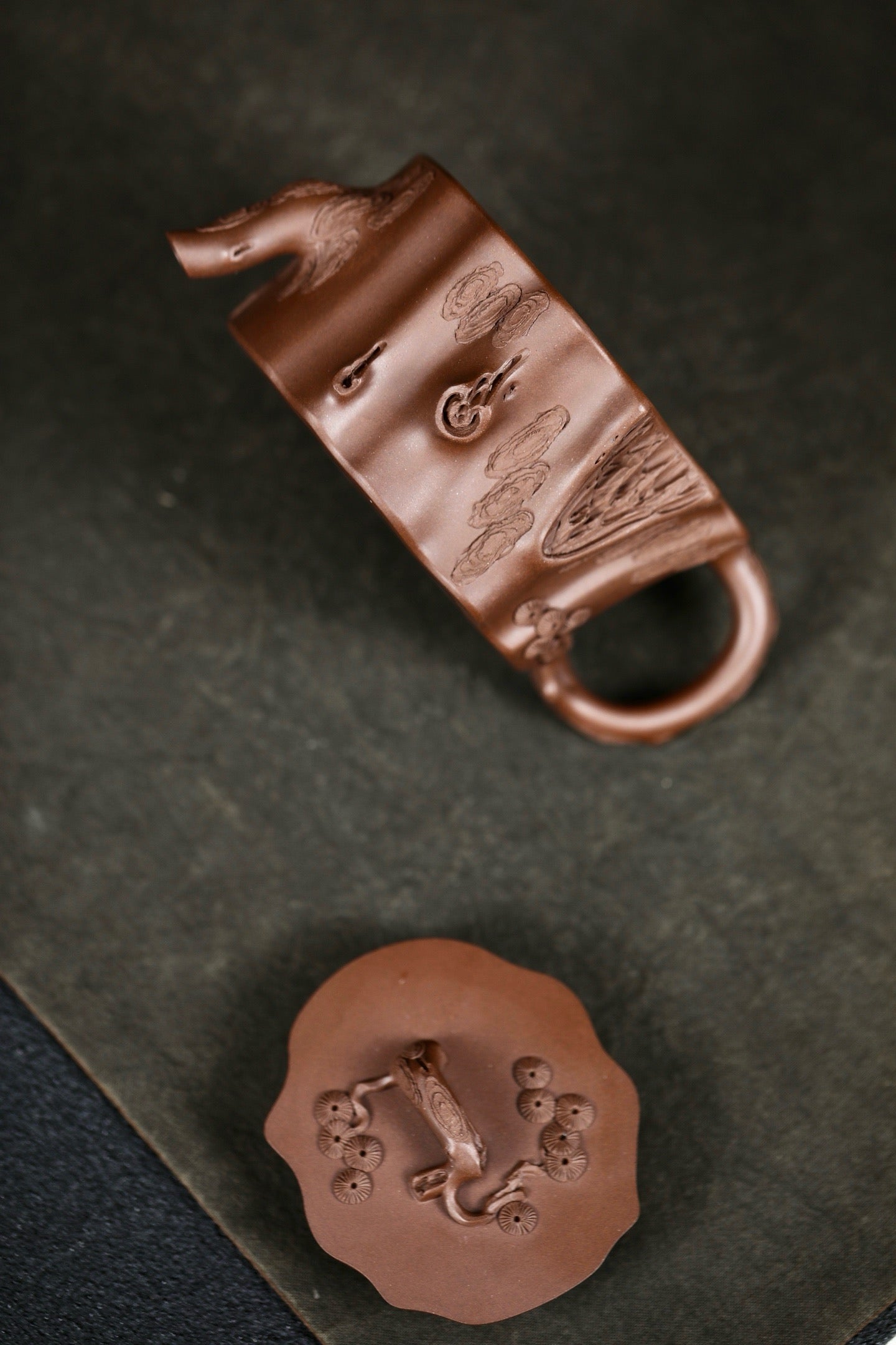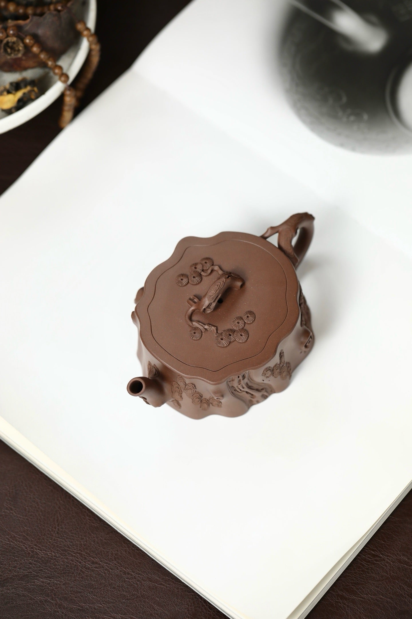 The vigorous vitality and strength of the pine root are particularly well presented. The pine branches show a distinct sense of layering, with the branches transformed into the spout and handle of the pot, as if they grew out of the root.